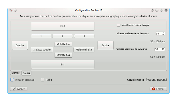 Pour accéder aux combinaisons de touches, il faut cliquer sur le bouton Avancé de la fenêtre de configuration simple (voir ci-dessus), apparaît alors cette fenêtre.
