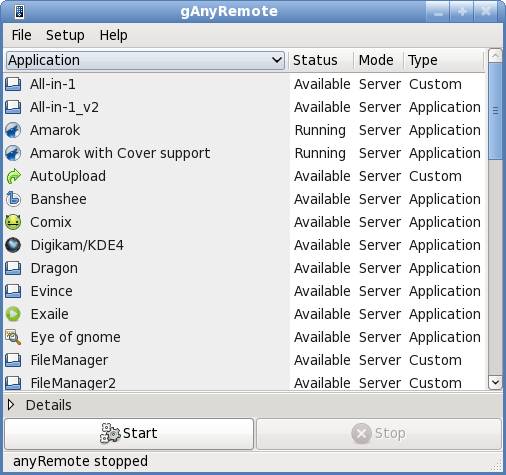 Le fichier de configuration "all-in-one2.cfg" qui se trouve dans /usr/share/anyremote/cfg-data/server-mode fait appel à un script qui liste sur votre téléphone les applications dont le contrôle est disponible à distance. Ainsi, pour passer d'une application à l'autre, vous n'avez pas à toucher l'ordinateur pour lancer un second serveur, et vous pouvez tour à tour visualiser des images, regarder une vidéo, écouter de la musique…