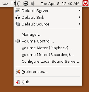 Pulse audio :PulseAudio est un serveur son, un processus d'arrière-plan qui accepte les entrées son d'une ou plusieurs sources (processus ou système de capture) et les redirige vers un ou plusieurs dispositifs (cartes son, serveurs PulseAudio distants, ou autres processus).